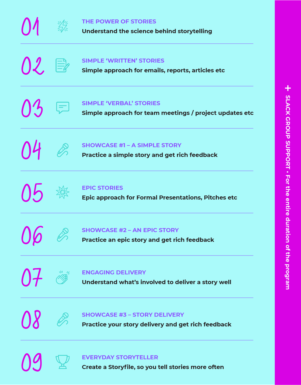 I've learned the tools and techniques to create engaging stories. Before the program, I was definitely more a facts and figures kind of presenter.